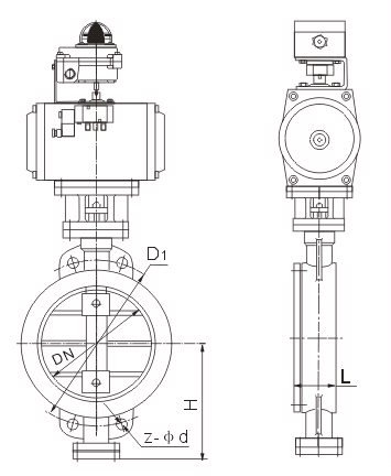 D673H0/16/氣動對夾式硬密封蝶閥主要外形連接尺寸(單位:mm)