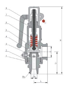 A28H 16/25/40 型帶手柄彈簧全啟式安全閥 外形尺寸和連接尺寸